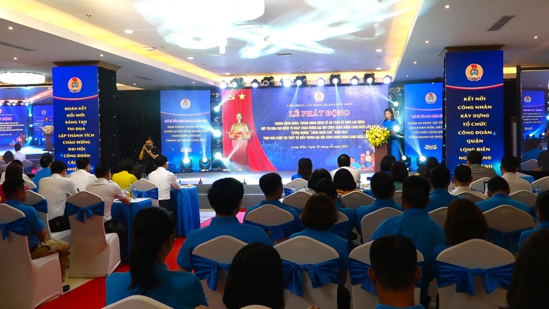 Tại buổi Lễ Ban Thường vụ LĐLĐ Quận phát động đợt thi đua 75 ngày cao điểm chào mừng Đại hội Công đoàn quận Long Biên lần thứ V, nhiệm kỳ 2023–2028. Thời gian phát động từ ngày 1/5/2023 đến Đại hội Công đoàn quận Long Biên lần thứ V. Đồng thời tổng kết cuộc thi thiết kế biểu trưng Đại hội V Công đoàn quận.