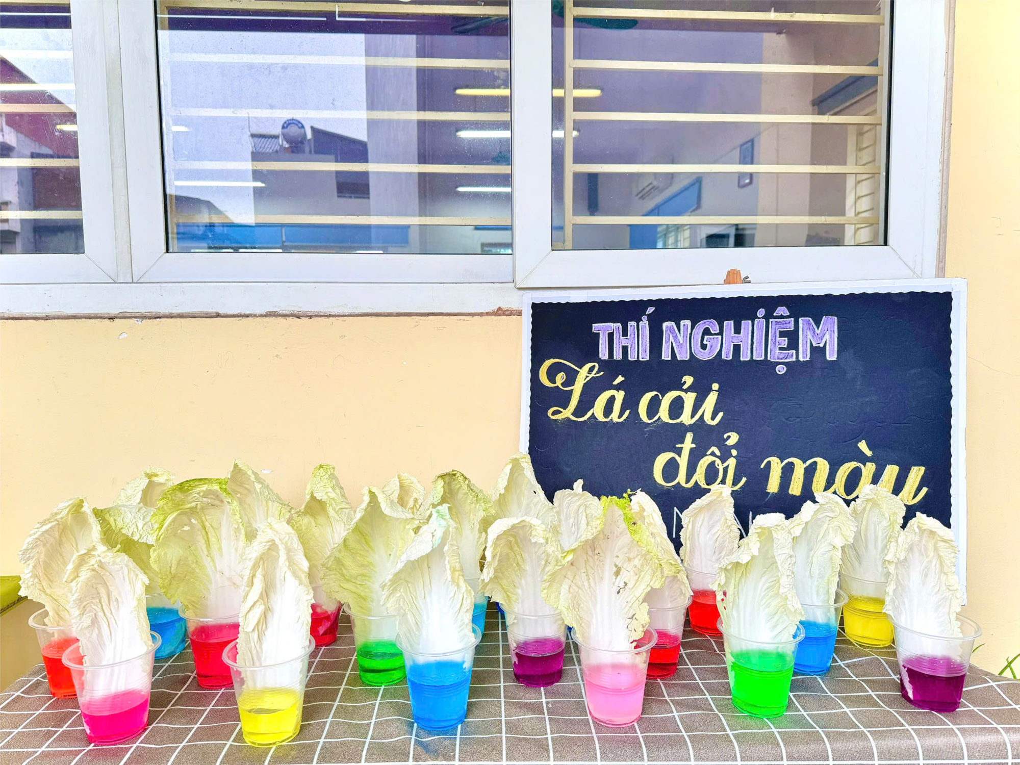 Các lá cải thảo bình thường bỗng chốc chuyển thành màu tím, xanh, hồng... đầy bất ngờ khiến bạn nào cũng mắt tròn xoe, reo hò thích thú. 🥳
