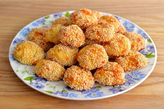 – Bánh phô mai viên tẩm vừng thơm ngon