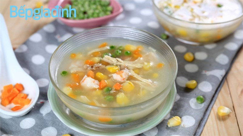Món súp gà rau củ vừa ngon, mềm, lại vừa bắt mắt, chắc chắn sẽ là món ngon bé thích mê. Thỉnh thoảng bạn hãy nấu món này để tăng nguồn dinh dưỡng cho bé nhé!