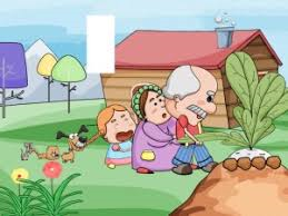 Bà già chạy ra túm áo ông, ông nắm cây cải nhổ mãi, nhổ mãi vẫn không được. Bà già gọi cháu gái: