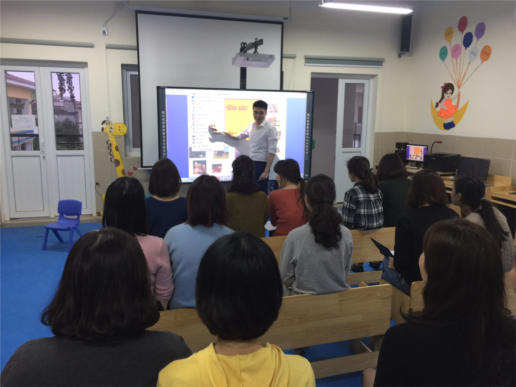 Qua hai giai đoạn nhà trường đã có 16 giáo viên có kỹ năng cơ bản để sử dụng bảng, thiết kế được những trò chơi đơn giản, những bài giảng hay cho trẻ ở mọi lứa tuổi, mọi lĩnh vực học tập.Những kỹ năng như: chèn âm thanh, hình ảnh, video, powerpoitn vào trong bảng được giáo viên sử dụng thành thạo, kỹ năng thiết kế các bài tập vẽ, tô màu, các bài tập nối, khoanh tròn cũng dược các giáo viên sử dụng để đưa vào giáo án cho trẻ trực tiếp tương tác với bảng đem lại hứng thú cho trẻ.Các giáo án dạy nhận biết, khám phá, toán... cũng được giáo viên triệt để khai thác, ứng dụng dạy tại bảng tạo cho trẻ tâm thế thoải mái lĩnh hội kiến thức dưới dạng trò chơi rất thú vị.