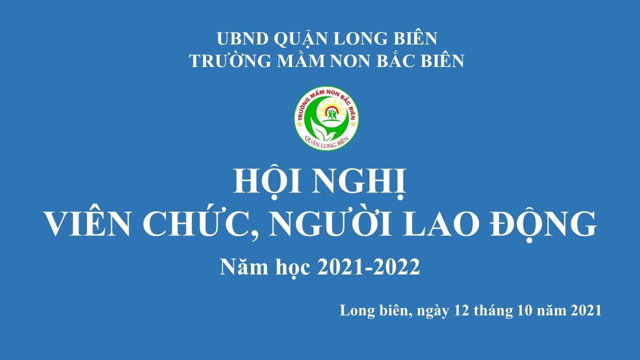 Thực hiện Hướng dẫn số 10/HD-LĐLĐ ngày 13/9/2021 của Liên đoàn lao động quận Long Biên về Hướng dẫn quy trình tổ chức Hội nghị cán bộ, công chức, viên chức và Hội nghị người lao động khối trường học năm học 2021 – 2022. Được sự đồng ý của Liên đoàn Lao động quận và Chi bộ trường mầm non Bắc Biên, Ban giám hiệu và công đoàn Trường mầm non Bắc Biên tổ chức hội nghị viên chức và phát động thi đua năm học 2021 - 2022.