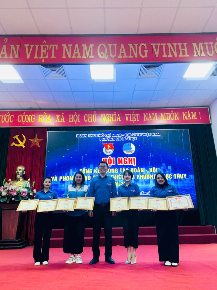 Cũng tại hội nghị, các tập thể và cá nhân đã nhận được Giấy khen của Quận đoàn Long Biên và UBND phường Ngọc Thuỵ vì có thành tích xuất sắc trong công tác Đoàn và phong trào thanh thiếu nhi năm 2024.
