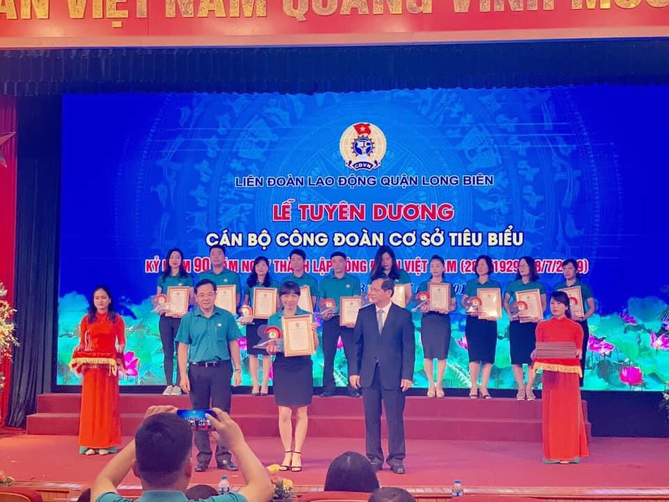 Nhân kỉ nệm 90 năm Ngày thành lập Công đoàn Việt Nam, Liên đoàn Lao động quận Long Biên tổ chức biểu dương 90 cán bộ Công đoàn cơ sở tiêu biểu, CĐ trường mầm non Bắc Biên có đ/c