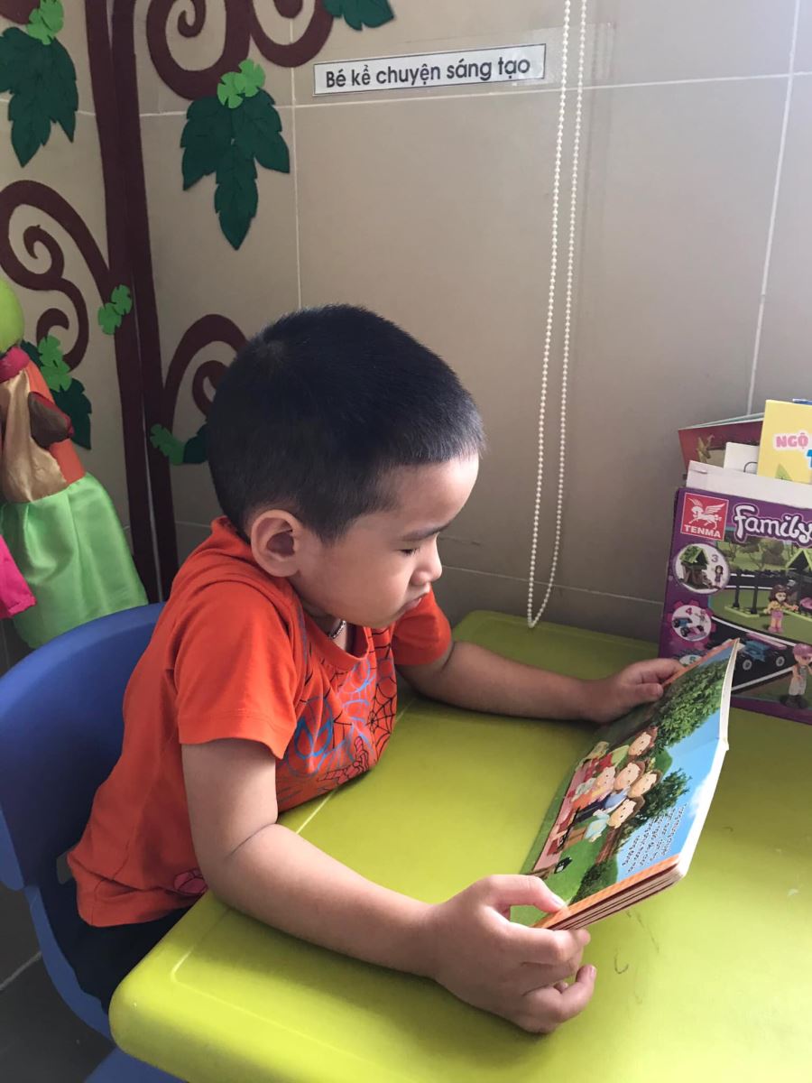 Bên cạnh đó bé được làm quen với cách mở sách vở và làm quen với tư thế khi ngồi đọc sách.