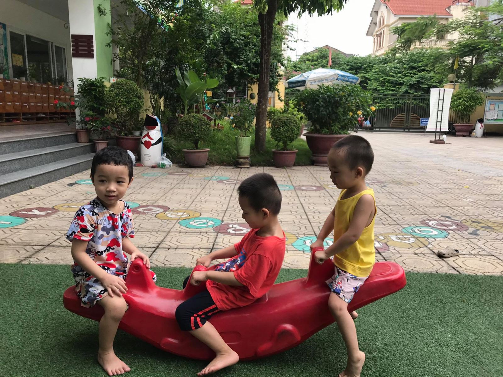 - Các bé ơi lúc chơi tự do không tranh dành nhau, nhường nhịn khi chơi, tuyệt đối không xô đẩy nhau nhé