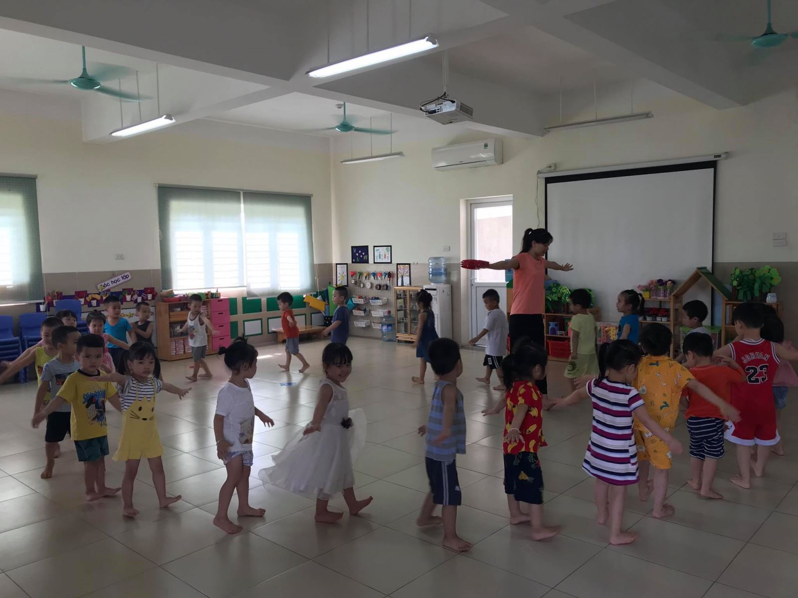 Nếu như điều kiện thời tiết thuận lợi, các bé sẽ được xuống sân mỗi ngày vừa để hít thở không khí trong lành, vừa được vận động sau một giấc ngủ dài. Nếu điều kiện thời tiết không thuận lợi, các cô sẽ tổ chức cho các bé hoạt động trong phòng thể chất. Các cô luôn cố gắng duy trì hoạt động này thường xuyên và đều đặn để các bé bắt đầu một ngày học với sự hứng khởi nhất.