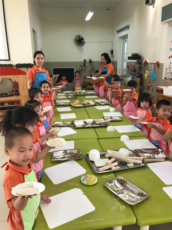 Các đầu bếp nhí lớp B1 cùng nhau tìm hiểu và trải nghiệm cách làm bánh gối nhé. Thật là thích !