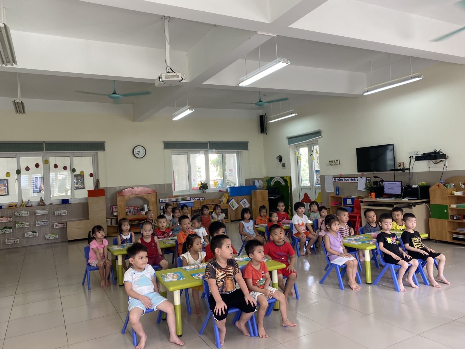Cũng chỉ là vẽ hình tròn, vẽ miệng, mắt, mũi, lông mày, tai, tóc..... Nhưng để giúp trẻ có sự sáng tạo và đặc biệt ghi nhớ những khuôn mặt của bạn bè mình của khoảng thời gian mầm non. các cô lớp B2 đã tổ chức tiết học tạo hình" Vẽ nét mặt" để trẻ có thể biết được cảm xúc của các bạn trong lớp