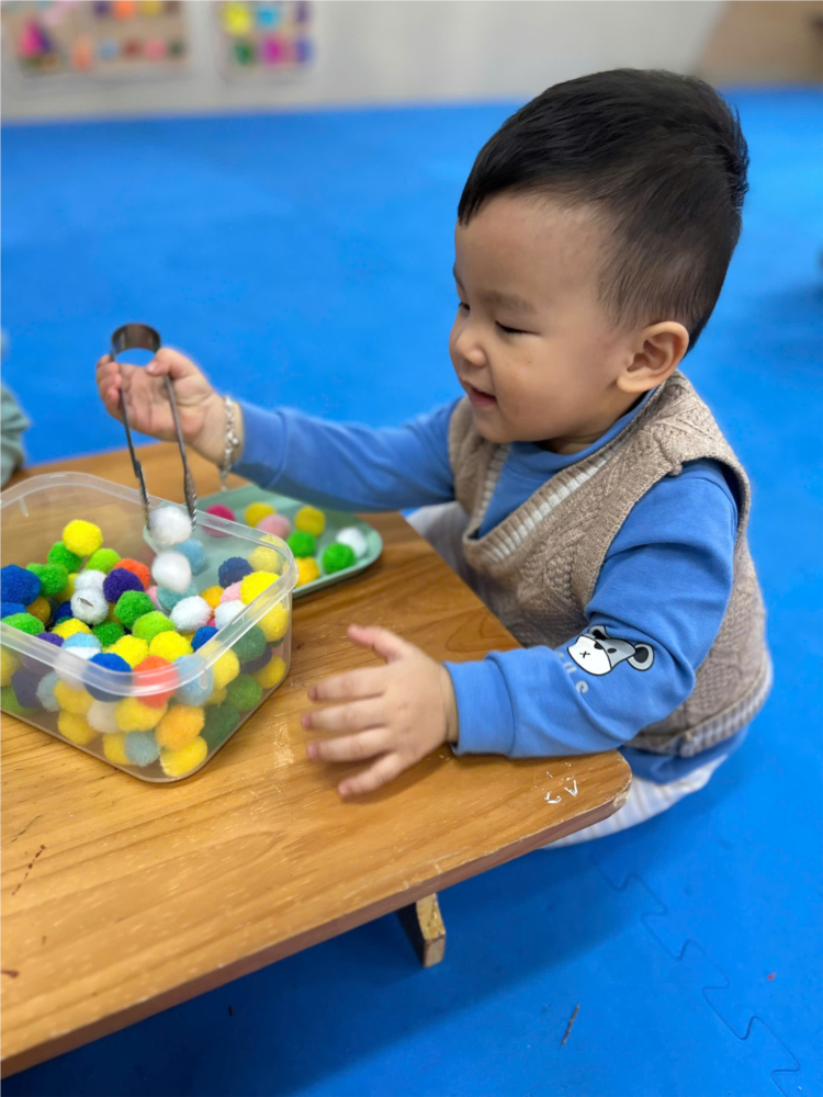 🌟Các bạn nhỏ lớp NT D1 hôm nay thật tập trung và khéo tay khi dùng kẹp gắp từng “quả bông” mềm mại cho vào khay đĩa của mình.