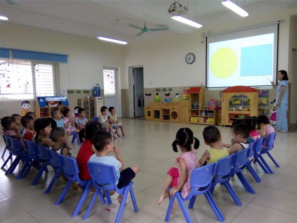 Sau đây là một số hình ảnh các bạn lớp MGB C2 trong hoạt động học làm quen với Toán:”Nhận biết hình tròn, hình vuông’: