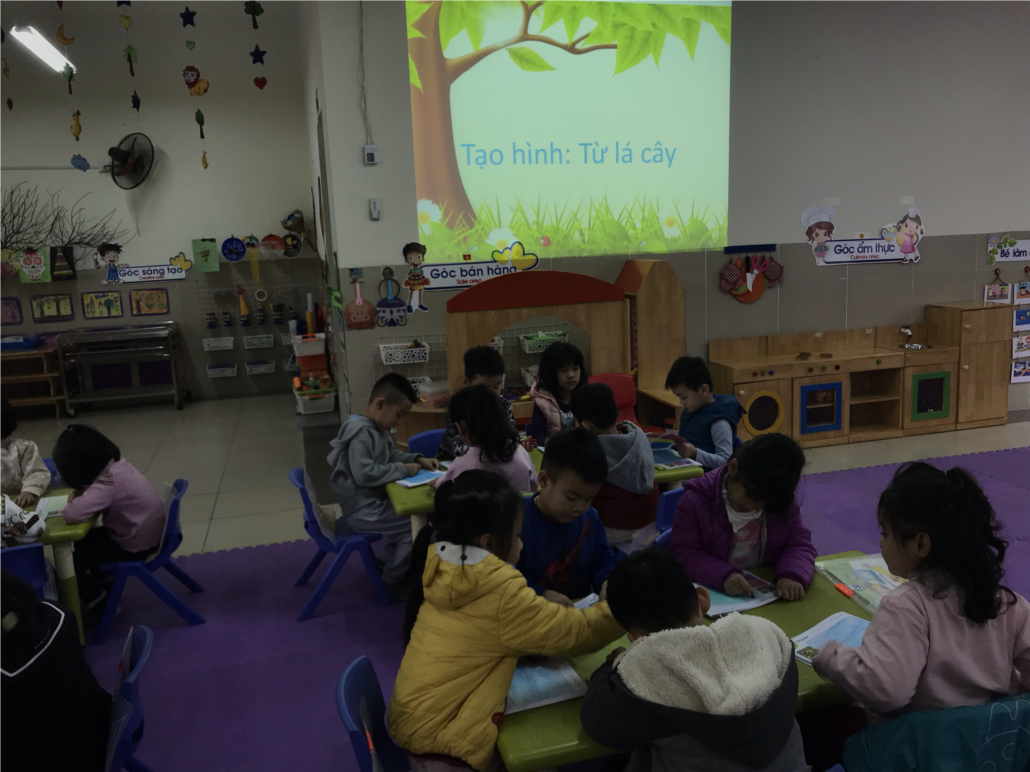 Cả lớp cùng nhau thể hiện một tác phẩm mỹ thuật sáng tạo. Đôi tay khéo léo của các con lựa chọn, sắp xếp và dán những chiếc lá cây theo trí tưởng tượng, trang trí thêm bằng những hạt kim sa và tô màu cho bức tranh thật đẹp./IMG_0228.jpg?w=900)