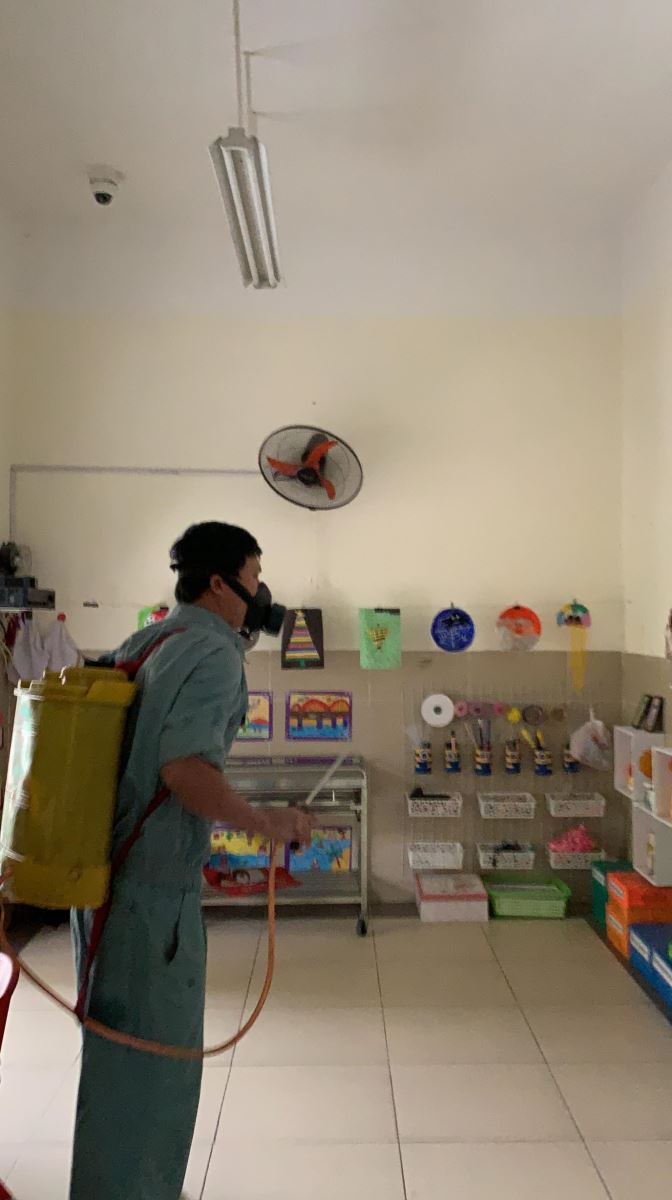 .Nhà trường đã xây dựng đầy đủ kế hoạch phòng chống bệnh viêm đường hô hấp cấp do virus Corona, thực hiện tốt việc theo dõi và quản lý tốt sức khỏe học sinh, giáo viên, cán bộ, nhân viên nhà trường. Bên cạnh đó nhà trường triển khai thực hiện phun khử khuẩn toàn trường: đồ chơi, giá kệ, lớp học, các phòng chức năng, phòng làm việc, bếp ăn…... Đây là việc làm rất cần thiết với tình hình dịch bệnh diễn ra hiện nay, nhằm ngăn ngừa, phòng chống việc lây lan, phát triển của dịch bệnh, giúp tạo môi trường tốt nhất cho học sinh học tập và hoạt động.
