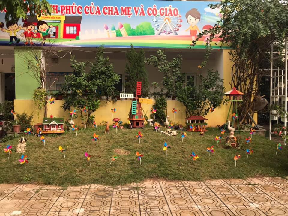 Toàn bộ giáo viên của các lớp tổ chức khử khuẩn trong lớp học, các phòng chức năng, các khu hướng nghiệp, hành lang, các khu tiểu cảnh, hiên trước sau, nhà vệ sinh, cầu thang, tay vịn, đồ dùng đồ chơi, dụng cụ học tập và các đồ vật trong phòng học, cửa kính, vách kính khu cầu thang các tầng, nền nhà, tường nhà, tay nắm cửa, tay vịn cầu thang, tay vịn lan can, bàn ghế… bằng dung dịch CloraminB và các chất tẩy rửa thông thường. Vệ sinh khăn lau mặt, lau tay bằng xà phòng, cây nước, tủ cốc, , chăn, màn, giường, của trẻ….