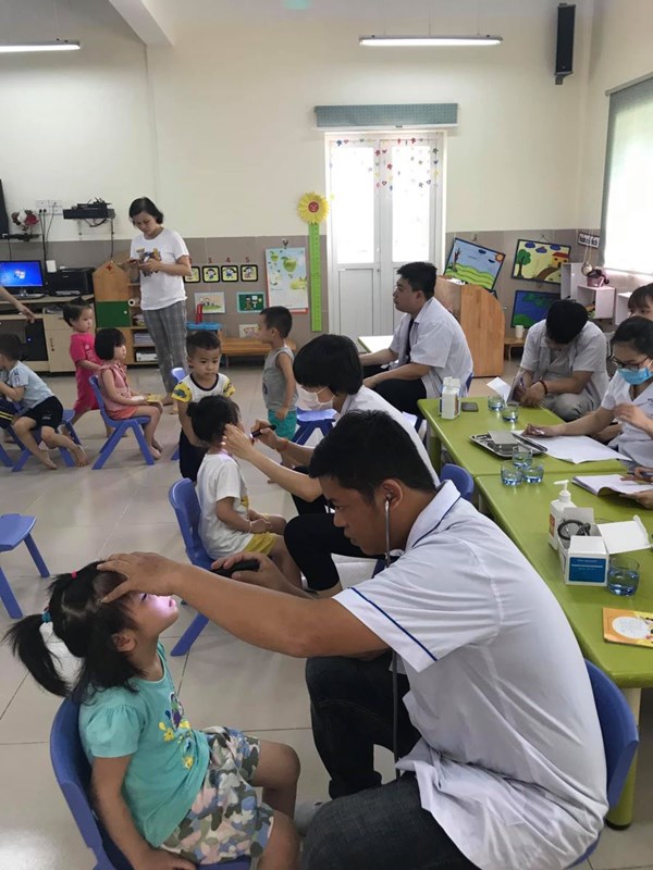 Tại buổi khám, học sinh được các y, bác sĩ của Trạm y tế khám: Mắt, Răng- Hàm - Mặt, Tai - Mũi - Họng, Khám Nội, Khám Da Liễu, Khám Cơ-Xương Khớp,.... Với những phương pháp khám nhẹ nhàng, cởi mở, các y bác sĩ đã tạo không khí vui tươi và hứng thú cho các bạn nhỏ. Kết quả khám sức khoẻ của trẻ sẽ được cán bộ y tế của phường ghi chép cụ thể trong sổ theo dõi sức khỏe và được bộ phận y tế nhà trường kết hợp với giáo viên các lớp thông báo đến phụ huynh về tình hình sức khỏe của trẻ, từ đó phụ huynh có kế hoạch chăm sóc và điều trị cho trẻ kịp thời.