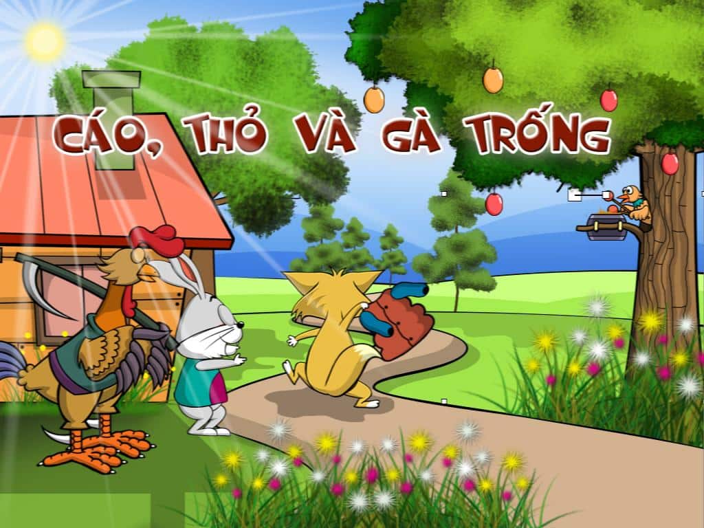 Gà Trống và Thỏ cùng về nhà Thỏ. Gà Trống cất tiếng hát: