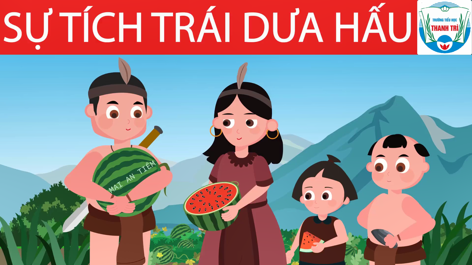 Truyên: Sự tích quả dưa hấuNgày xưa, thời vua Hùng Vương, đất nước ta có núi cao, có sông rộng, trời đẹp nắng vàng, nhưng đồng ruộng thưa thớt, hoa quả chưa có nhiều thứ thơm ngọt như bây giờ. Vua Hùng Vương thứ mười bảy có một người con nuôi là An Tiêm có tài tháo vát và có trí hơn người.